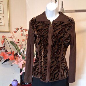 NWT Woman's Dark Brown Zip-Up Cardigan Knitwear Lightweight Sweater 6 S