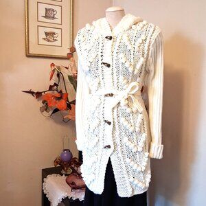 NWT Woman's White Hooded Cardigan Coat Knit Lightweight Warm & Elegant Outerwear