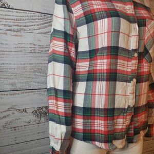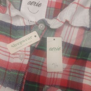 NWT Womans Aerie White/Red/Green Plaid Flannel Pajama Top