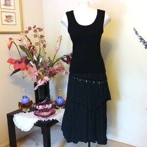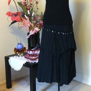 NWT Women Black 2-Layers of Tiered Lined Elastic High Waist Asymmetrical Skirt