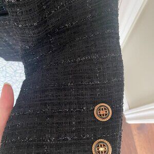 NWT Women’s Black Quilted Button Front Tweed Coat Warm Winter Jacket Classic