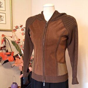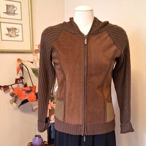 NWT Women's Brown Zip-Up Hooded Cardigan Knitwear Sweater 6 S