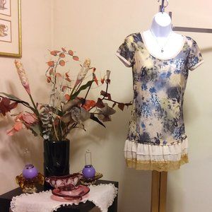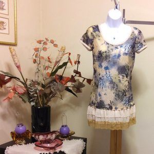 NWT Women’s Chic Beautiful Floral Printed Short Sleeve Scoop Neck Blouse Top