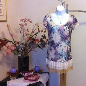 NWT Women’s Chic Beautiful Floral Printed Short Sleeve Scoop Neck Blouse Top