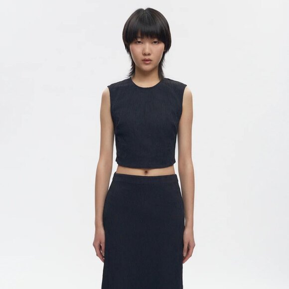 The Hathor Tank is a structured sleeveless top, made from soft Egyptian cotton with a touch of stretch. Featuring a tonal textured finish and a sleek cropped cut, it’s designed to hold its shape while moving with you. A subtle keyhole detail at the back adds a refined touch.