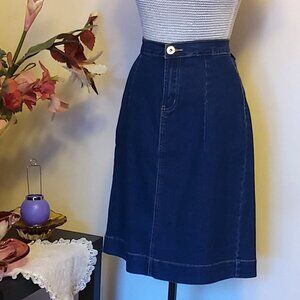 NWT Style Fashions Women’s Navy Blue Stretch Cotton Chic Midi Denim Skit Size 8, 12 and 16