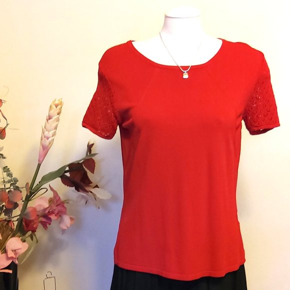 NWT Women’s Short Cochet Sleeve Scoop Neck Red Sweater Undershirt Stretch Top Size M could fit for Size 8 or 10