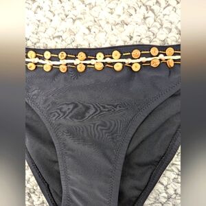 NWT Womens (Size Medium) Black Tube Top Bikini With Shell Buttons & Gold Accents
