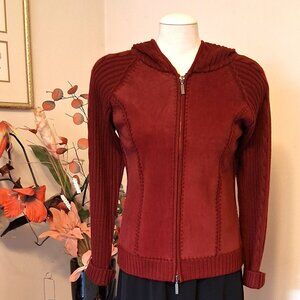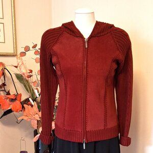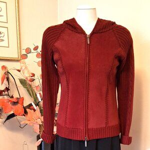 NWT Women's Wine Red Burgundy Zip-Up Hooded Cardigan Knitwear Sweater 6 S