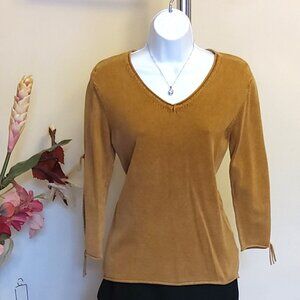 NWT Women’s Mustard Yellow Lightweight 3/4 Sleeve Cardigan Pullover Fall Winter Sweater Size 8 or 10