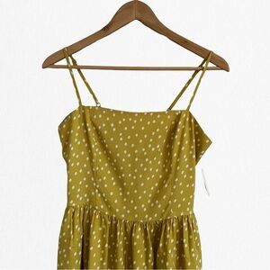 NWT Women’s gold and white polka dot summer dress with spaghetti straps …