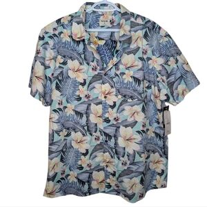NWT XL Men's Hurley Diffused Blue Hawaiian Tropical Cabana Shirt