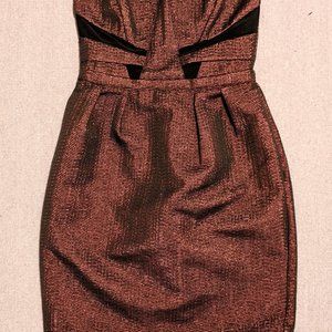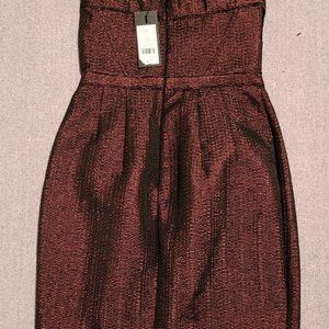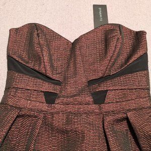 New with tags, Extra Small, structured, high-waisted cocktail dress in Black and shiny Red Jacquard pattern with Mesh cut-outs