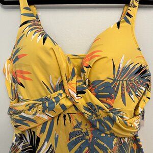 New with Tags - In Every Story (Penningtons) yellow tropical leaf print tankini swim top.