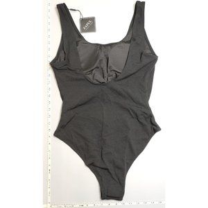 Design: Ribbed, padded, front belly cut-out with decorative tie knot
