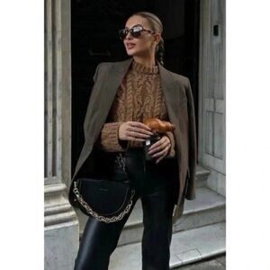 NWT ZARA Bloggers Fave Cable Knit Cropped Sweater Tan Brown Size Small