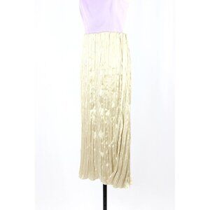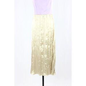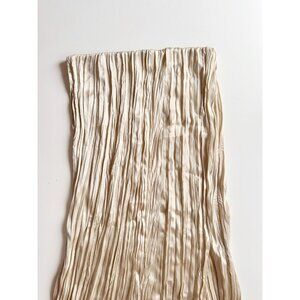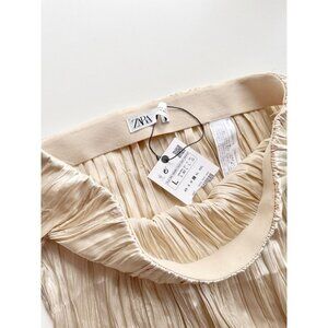 NWT ZARA Champagne Beige Satin Crinkle Pleated Midi Slip Skirt, Size L
