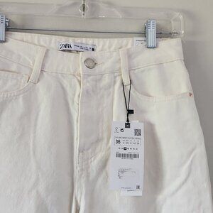 NWT ZARA | Chic Jeans Straight Fit High Rise Rigid Ankle Cream Sz 4