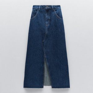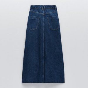 NWT ZARA Dark Blue Denim Midi Skirt