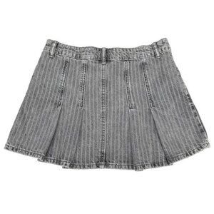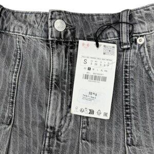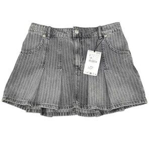 NWT ZARA Denim Mid Rise Striped Box Pleat Skirt Size Small