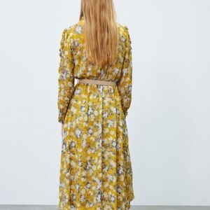 ZARA Yellow Floral Jacquard Midi Dress – NWT
