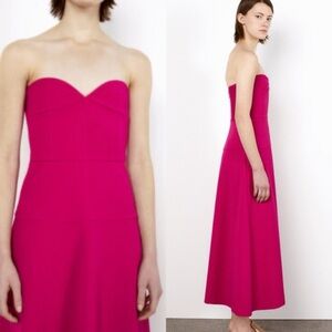 NWT ZARA Fuchsia Strapless Sweetheart Neckline Midi Dress L Blogger Favorite
