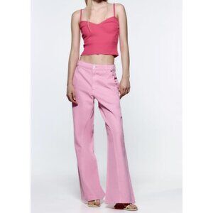 NWT ZARA Pink Super Wide Leg High Waist Jeans 8