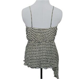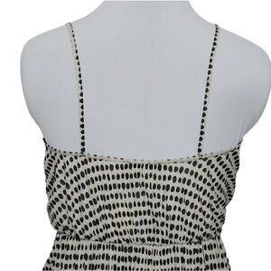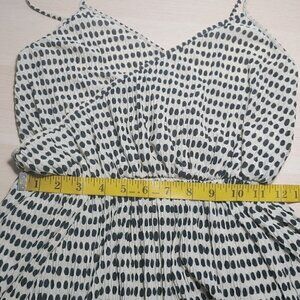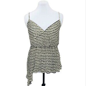 NWT ZARA Cream and black, polka dot, wrap/v-neck, elastic waist, all pleated, flowy, asymmetrical hem, thin non-adjustable straps, camisole, size small. Nice super light, soft and stretch fabric.