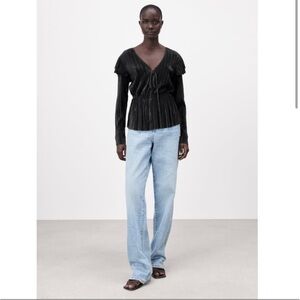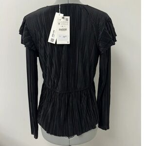 NWT ZARA Ruffled Pleated Blouse Sz M Goth Fairy Witchy