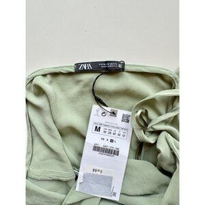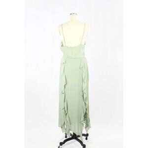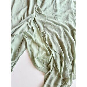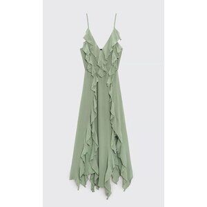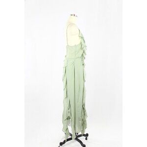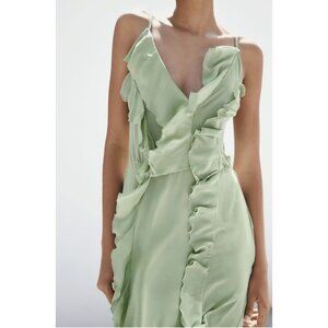NWT ZARA Sea Green Chiffon Ruffle Cascading Long V-Neck Maxi Dress, Size L