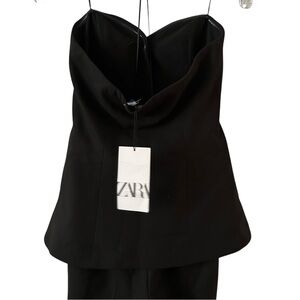 NWT ZARA TWO-PIECE FLARED JUMPSUIT BLACK STRAPLESS