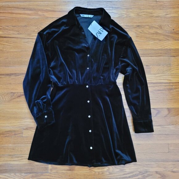 NWT ZARA | Velvet Long Sleeve Button-Front Dress | Sz. S