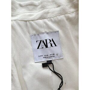 NWT ZARA White Cotton Linen Blend Cropped Single Breasted Blazer, Size M