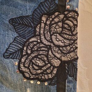 ✨NWT✨ ZARA trf High-Waist Distressed Jeans - Lace/Rhinestones/Pearls