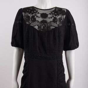 NWT Zara Black Dress With Embroidery Lace Puff Sleeves Size XS