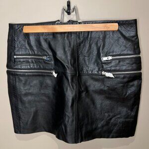 NWT - Zara - Black Leather Mini Skirt with Zipper Details - size Medium