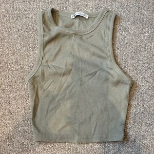 NWT Zara Black Sleeveless mock neck Faux Leather Zip back Top - size Large