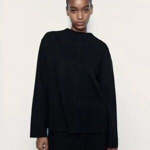 NWT Zara Black Sweater Ribbed Long Sleeve Size Medium