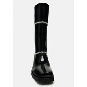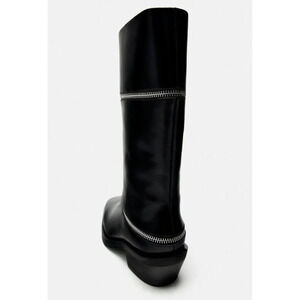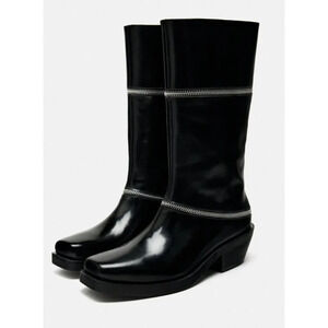 NWT Zara Black ZIPPERED LEATHER Mid Calf Boots 6