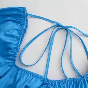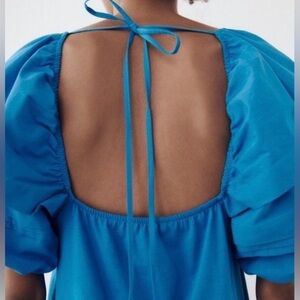 NWT Zara Blue Puff Sleeve Blue A-Line Mini Dress Sz M