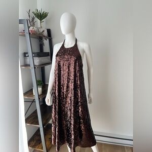 Stunning sequin halter maxi dress in a rich brown shade. Perfect for evening events. Size XS may have a few sequins missing just because of manipulations. Nwt