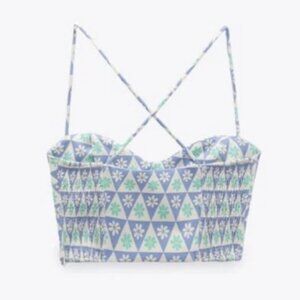 NWT Zara Geometric / Floral Print Corset Crop Top Sz S