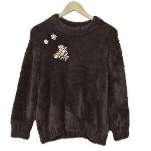 NWT Zara Faux Fur Knit Sweater w/ Brooches Brown Soft Size Medium