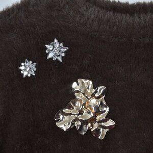 New with Tags NWT Zara Faux Fur Knit Sweater w/ Brooches Brown Soft