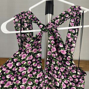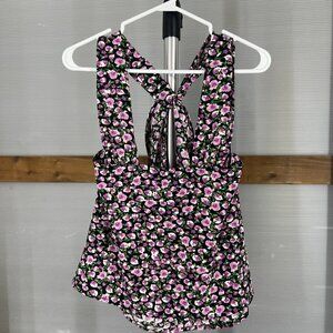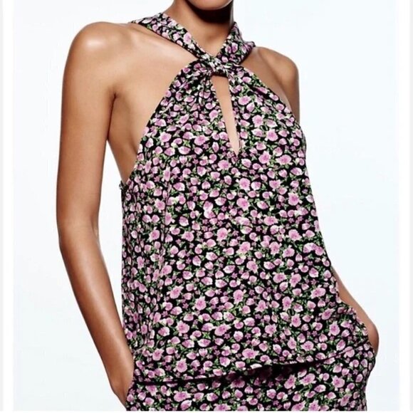 NWT Zara Floral Twist Neck Halter Blouse Tank Top Purple Black Green White Sz S