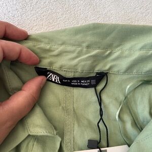 ZARA NWT SS22 Woman Shirt Dress with Gathering – Light Sage Green