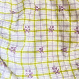 NWT Zara Gingham Floral Embroidered Gathered Puff Sleeve Mini Dress L