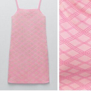 NWT. Zara Pink Diamond Pattern Knit Mini Dress
