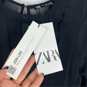 NWT - Zara, Ladies’ Short Ruffled Dress In Black. Size: S.