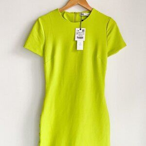 NWT Zara Lime Green Side Cut Out Button Detail Midi Dress M